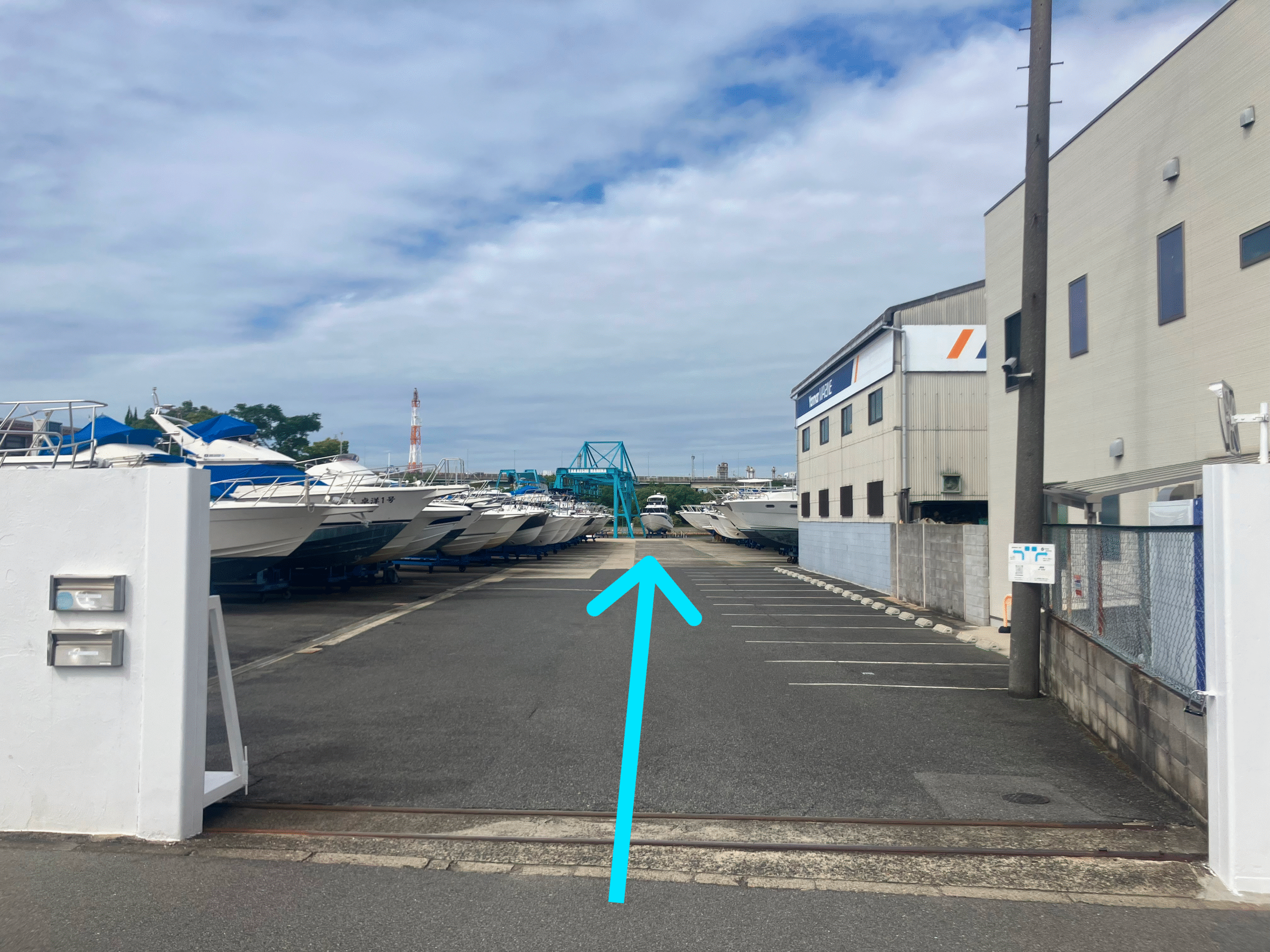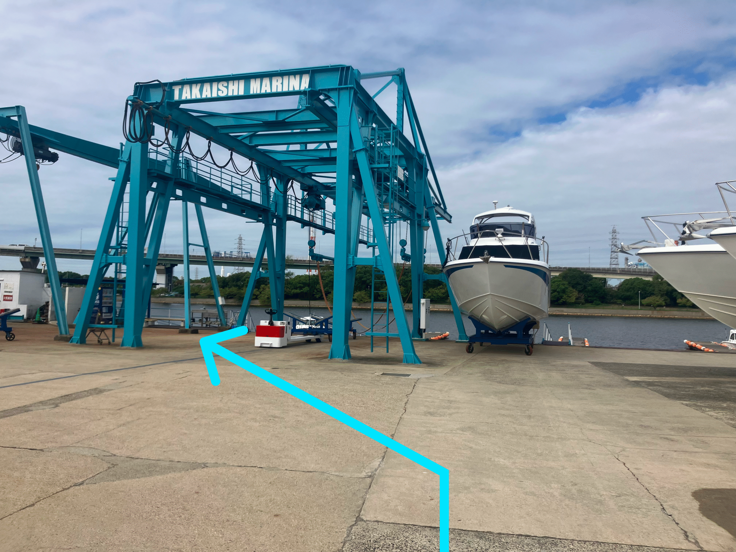 水色のクレーンに向かって真っすぐお進みください。