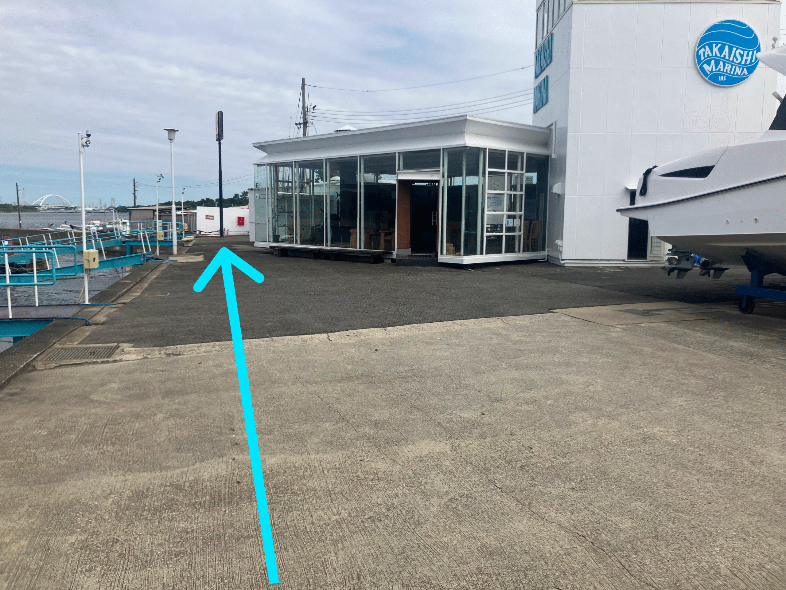 クラブハウスの左手側の岸壁沿いをお進みください。